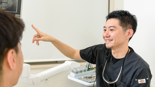 問診からしっかりと患者さまのご希望を知り、お体やお口の状態を診て把握し、正しい診査・診断ができるように心がけています。また、レントゲンや検査結果などの資料を揃え、わかりやすく伝えることも、治療に際して重要だと考えています。
