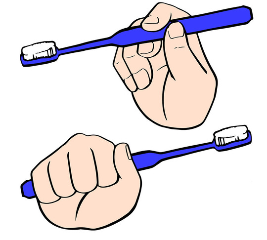 歯ブラシはペングリップ、もしくはパームグリップで持ちましょう。