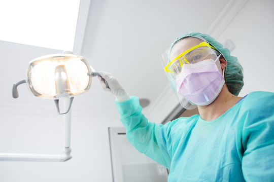 院内スタッフにおいても、感染防護対策をきちんと行い治療に努めております。マスクの装着はもちろん、処置に応じてゴーグル、フェイスガード、キャップなどを着用し、感染対策を行っております。