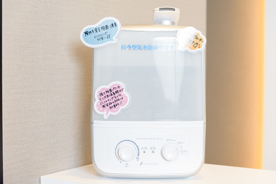 除菌効果のある次亜塩素酸水を用いて、空気清浄や加湿を行っております。
